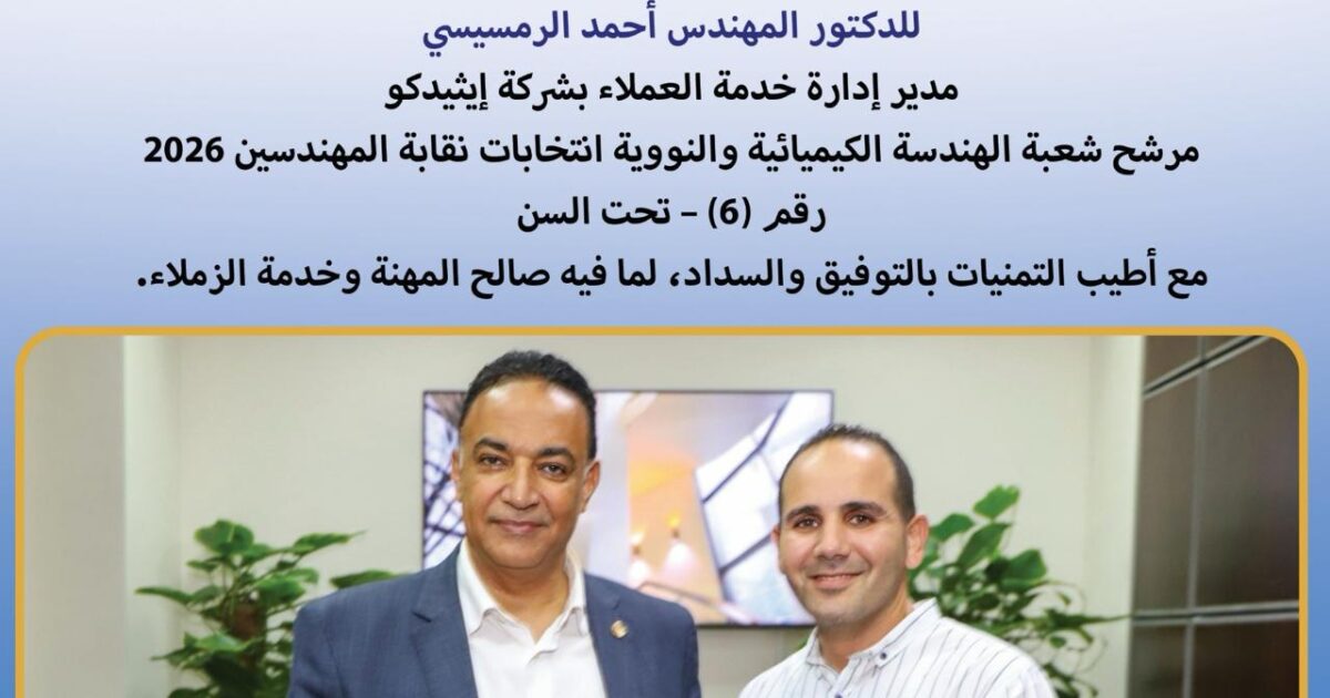 دعم من “إيثيدكو” للمهندس أحمد الرمسي في انتخابات نقابة المهندسين 2026