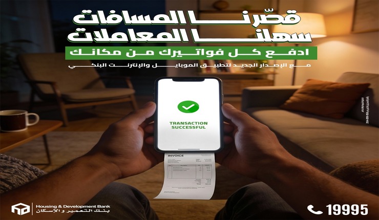 أعلن بنك التعمير والإسكان عن تقديم باقة متكاملة من الخدمات المصرفية الرقمية عبر تطبيق HDB Mobile Banking وخدمة الإنترنت البنكي، في إطار استراتيجيته للتحول الرقمي وتيسير حصول العملاء على الخدمات البنكية بسهولة وأمان.