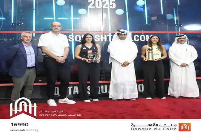بنك القاهرة يهنئ نور الشربيني لفوزها بالمركز الثاني في بطولة Qatar Classic 2025 للإسكواش