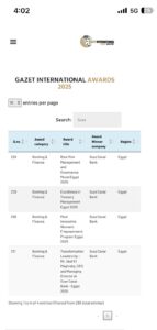 وحصد البنك الجوائز التالية ضمن جوائز Gazet International Awards 2025: