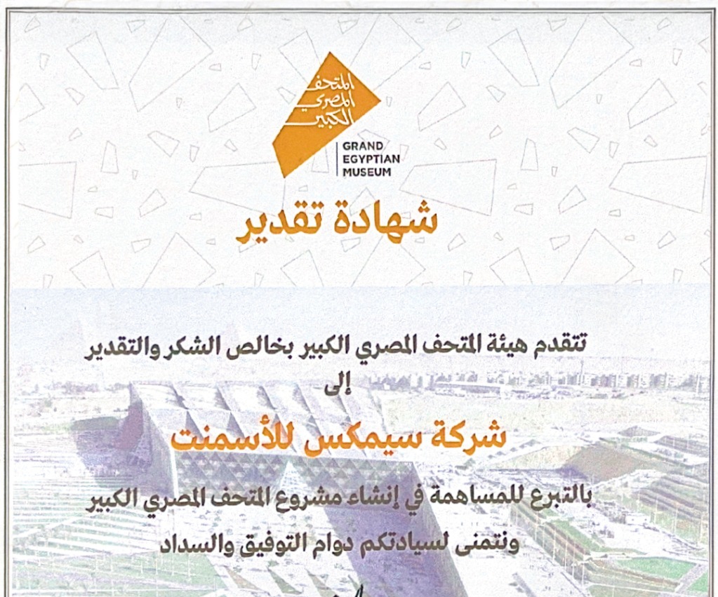 مع فتح المتحف المصري الكبير أبوابه أمام العالم، تفخر سيمكس مصر باستعراض دورها كأحد أوائل الداعمين لهذا المشروع الثقافي الذي يُعد من بين أهم المشاريع في القرن. وتُظهر مشاركة سيمكس في هذا الصرح الوطني التزامها الراسخ تجاه مصر وتراثها ومستقبلها حيث أدركت الشركة الأهمية القصوى للمتحف المصري الكبير منذ المراحل